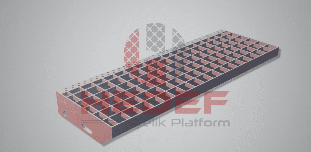 Genellikle platformlarda hızlı montaj ve işçi güvenliği açısından kullanılmakta olan bir basamak platform ızgara tipidir.